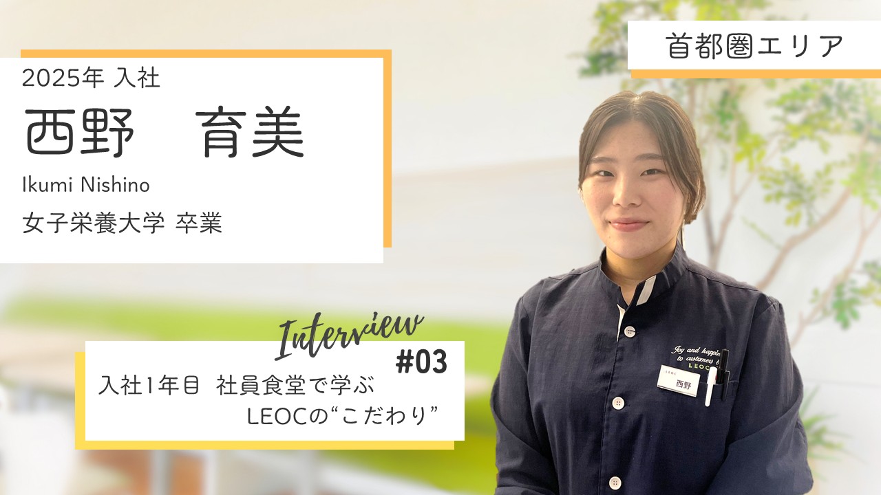 LEOCの「お客様に喜びと感動を」という経営理念が、私の美味しい食事を通して喫食者の方に寄り添える栄養士になりたいという想いにマッチしました! LEOCだったら私の理想とする食事の提供が実現できると思ったんです! 他にも、LEOCの会社説明会や先輩社員の方々のお話を聞く中で、アットホームで働きやすそうな会社だなと直感して、 LEOCに入社を決めました!