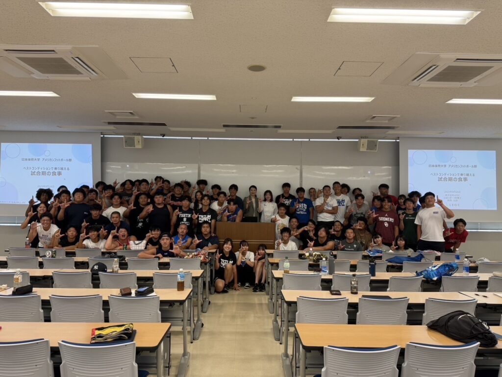 2025年9月16日(火)、日本体育大学世田谷キャンパスにてアメリカンフットボール部を対象に、仲西 加奈(公認スポーツ栄養士)が栄養セミナーを実施いたしました。